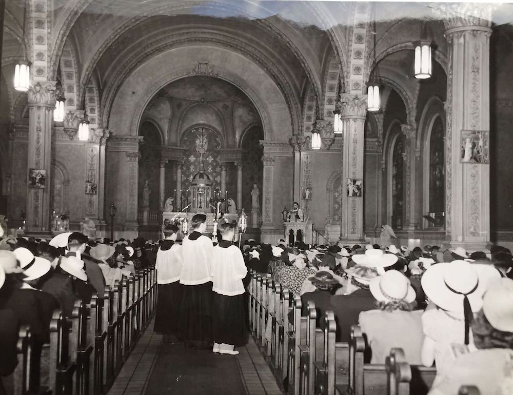 To answer the need of the expanding Catholic population, Bishop Ignatius F. Horstmann, the bishop of Cleveland, appointed Reverend Thomas F. Mahon as pastor of St. Thomas Aquinas Parish on June 26, 1898. In 1905, construction finished on the grand Romanesque church, located at 9205 Superior Avenue. The Sisters of St. Joseph had overseen the parish school since 1899, and a formal St. Thomas Aquinas school building opened on November 25, 1929. Irish and German immigrants and first generation Irish and German Americans comprised the congregation. Due to the large Irish influence, this church became known as the “Irish Cathedral.”