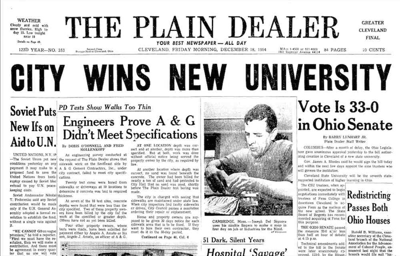 City Wins New University Although House Bill No. 2 enjoyed wide margins of victory in both the House and Senate considerable resistance to Cleveland State's establishment still existed. Other universities feared losing prospective students and state funds, there were concerns about the stability of Fenn's campus as the school's nucleus, and many felt CSU should be located outside the city where land was cheaper. Source: Plain Dealer, December 18, 1964 Date: December, 18 1964