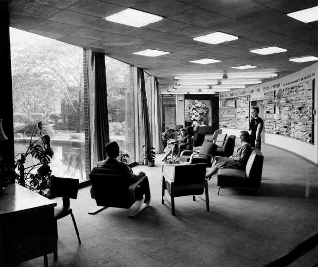 GE Lighting Institute, 1963 This interior view overlooks the pool at Nela Park. Source: Cleveland State University Library Special Collections