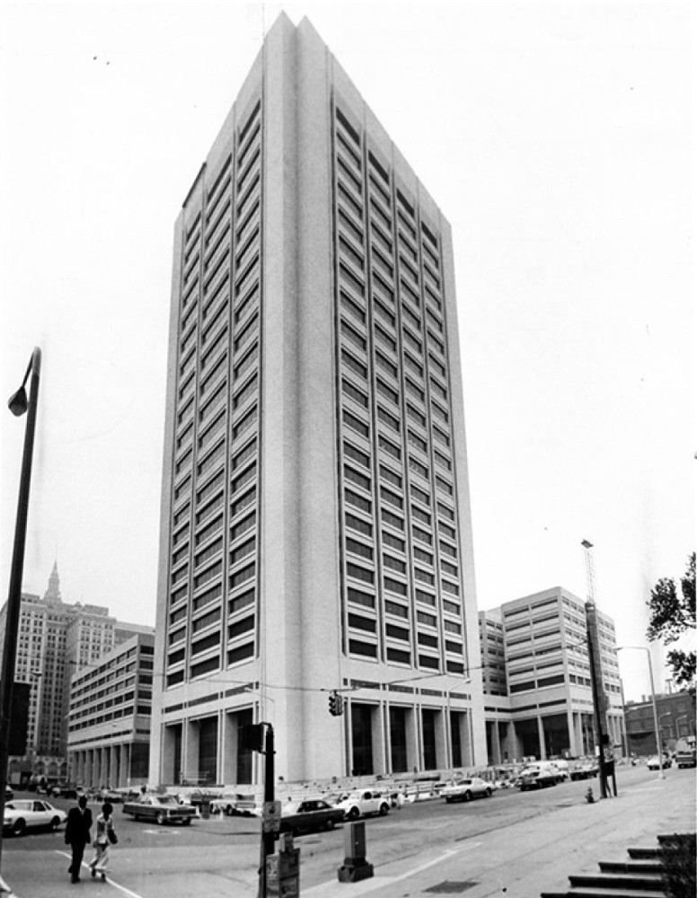 In 1923, the Cleveland Chamber of Commerce recommended the creation of a single facility to house both the Cuyahoga County Common Pleas and Cleveland Municipal Courts. Placing the two courts in the same building, it was hoped, would help address problems of corruption in the Municipal Court. In 1976, over fifty years later, the Justice Center finally opened.