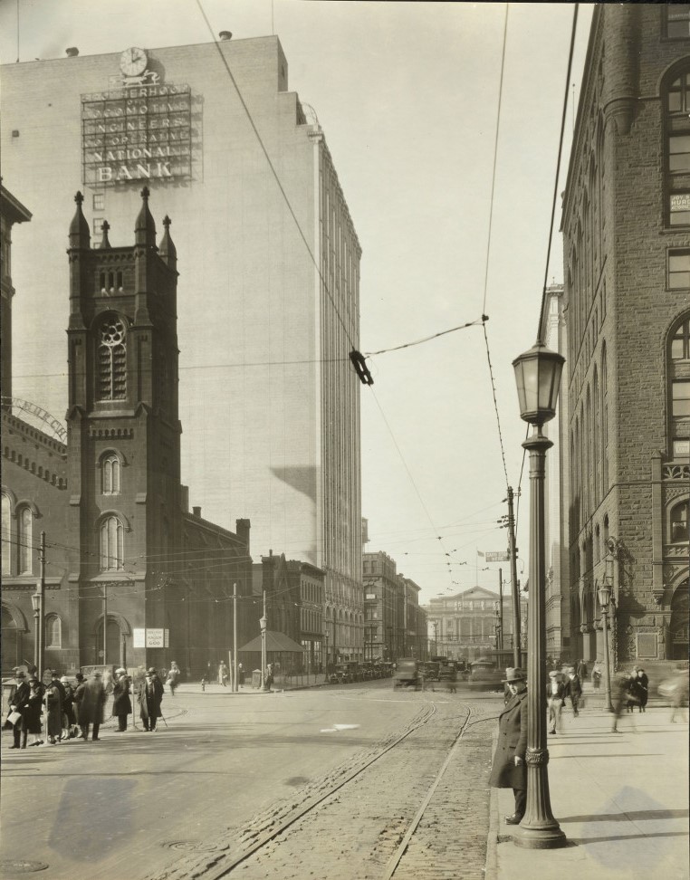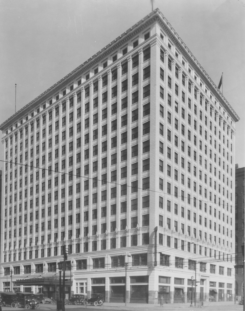 On July 20, 1925, its formal opening was held. The Brotherhood of Locomotive Engineers (BLE) Bank Building--known to us today as the Standard Building. That beautiful 21-story pale cream terra cotta building located on the southwest corner of Ontario Street and St. Clair Avenue, in downtown Cleveland. Built by the union whose name it originally bore and designed by the well-regarded architectural firm of Knox and Elliot, whose other works included the Rockefeller Building (1905), the Hippodrome Theater (1908), and the Engineers Building (1910) downtown, and the Breakers Hotel (1905) at Cedar Point. At 282 feet, it was taller than any other in Cleveland to that date, except for the Union Trust Building (in 2022, the Centennial Building), at the corner of Euclid Avenue and East Ninth Street. And even that building--also with 21 stories-- was only 7 feet taller.