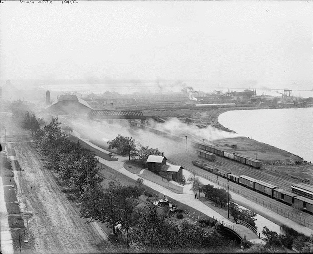 From Lake to Lake This is the Cleveland harbor as it looked sometime between 1900 and 1910. The Erie Railroad connected the Cleveland harbor with a stop at Geauga Lake. Not only did Geauga Lake support recreational uses, but the land near it was mined for resources like coal and stone. Source: Library of Congress Photograph Division Creator: Detroit Publishing Company Date: Ca. 1900s