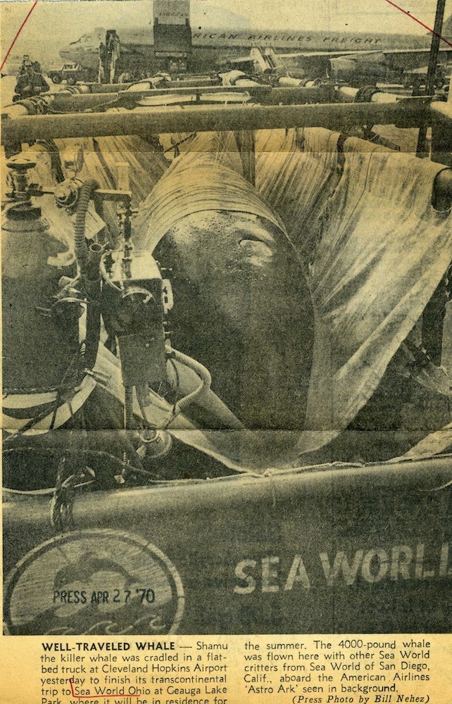 Shamu, the Killer Whale, 1970 A story about Geauga Lake would be incomplete without the mention of Shamu the killer whale. This photograph shows Shamu traveling across the country to reside in Sea World of Ohio for the summer in the large tanks on the site. Source: Cleveland Press Collection, Cleveland State University Library Special Collections Creator: Bill Nehez Date: April 27, 1970