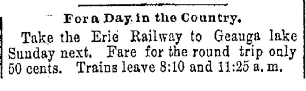Geauga Lake Ad, 1890 This advertisement is an example of businessmen imploring Cleveland residents to take the train to enjoy a nice Sunday of recreation. Later ads would use words that made Geauga Lake sound like a reprieve from the grit and grime of the city. Source: Cleveland Plain Dealer Date: June 12, 1890