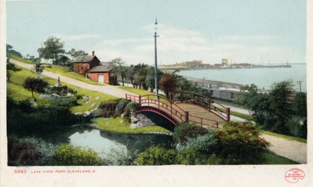 The urban park movement came rather late to Cleveland, emerging in September 1865 when a city council committee was appointed to consider the establishment of public parks. Finally, after new state laws were enacted, in 1871 Cleveland’s Board of Park Commissioners was created. In 1874 the park board began selling park bonds to finance land acquisition and improvements to create several parks, including Lake View Park. This park stood on the natural bluff overlooking the Lake Erie until Municipal Stadium (later replaced by today’s FirstEnergy Stadium)—built on fill that extended the lakeshore northward—blocked the view. Cleveland’s parks started to take shape over the next ten years through various donations, but they lacked in comparison to park development in other cities with populations similar to Cleveland’s, and with growing urbanization it seemed that the city was running out of land to set aside for parks. Various state legislation led to an increase in park power, and by 1900 Cleveland would gain ten new parks totaling over 1,200 acres, approximately two thirds of which had been donated. Finally a good amount of Cleveland’s lakefront had been saved for parks and conservation in Edgewater Park, Gordon Park, and Lake View Park.