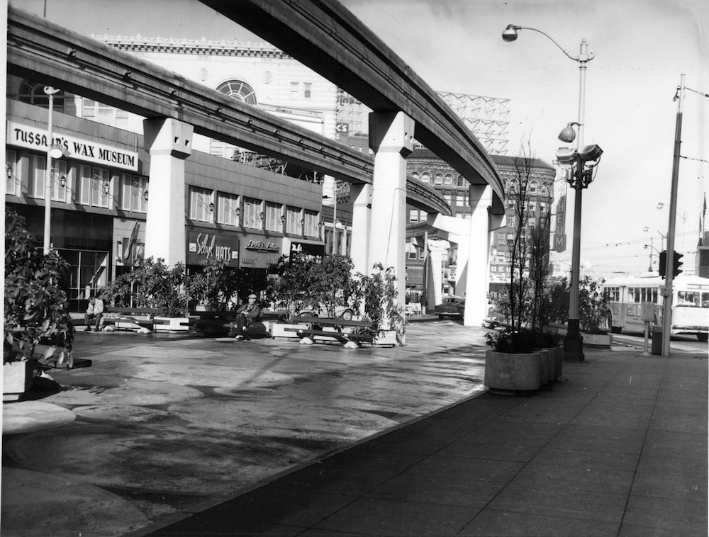 Downtown transit circulation was an important concern in Cleveland as in other U.S. cities, particularly in the second half of the twentieth century. In the 1950s the Cleveland Transit System (predecessor of today’s RTA) had twice failed to achieve a downtown circulator subway to serve as the hub for a revamped rapid transit system serving the metropolitan area. Cleveland;s downtown consisted of dispersed retail locations, government centers, and office buildings, which the DPM planned to connect with its 2.2 mile loop, elevated fifteen feet above Cleveland’s streets.