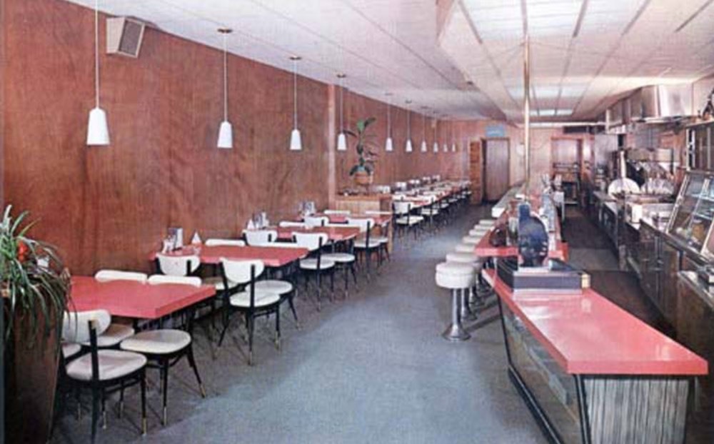 Sportsman Restaurant, ca. 1950s This 63-year-old establishment, among the longest in continuing operation in downtown and a longtime haunt of politicians, judges, and lawyers, and a pregame stop for Browns players and fans, closed in 2010 to make way for the Global Center's construction. The deli-style restaurant was still fairly new in this 1950s postcard view, but the location had previously served as another restaurant. Source: Cleveland Memory Project, Cleveland State University Library Special Collections