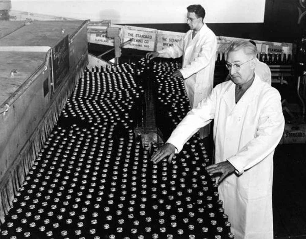 Creadon's savvy in the saloon business, Feighan's business acumen, and Pavlik's brewing skills: They were a winning combination. By 1913, new brewery buildings had gone up on both the north and south sides of Train Avenue and the company was now marketing Pavlik's lager under the name of Erin Brew, making it a favorite among Cleveland's west side Irish-American community. According to the company's 1914 corporate report, between the years 1906 and 1913 it almost doubled production, increasing annual output from 40,000 barrels to 75,000 in that period. As it approached the end of that decade, Standard Brewing Company had become one of Cleveland's largest and most successful independent breweries. Then, in 1919, the State of Ohio banned the sale and manufacture of liquor within the state, and one year after that the Eighteenth Amendment to the U.S. Constitution was passed, ushering in the era of national Prohibition. Standard Brewing Company, like several other Cleveland breweries that survived Prohibition, converted its manufacturing facilities to the production of ginger ale and other soft drinks. When Prohibition ended in 1933, those breweries were able to quickly shift production back to beer. By May of that year, Standard Brewing Company was once again producing Erin Brew beer for a very thirsty consumer public.