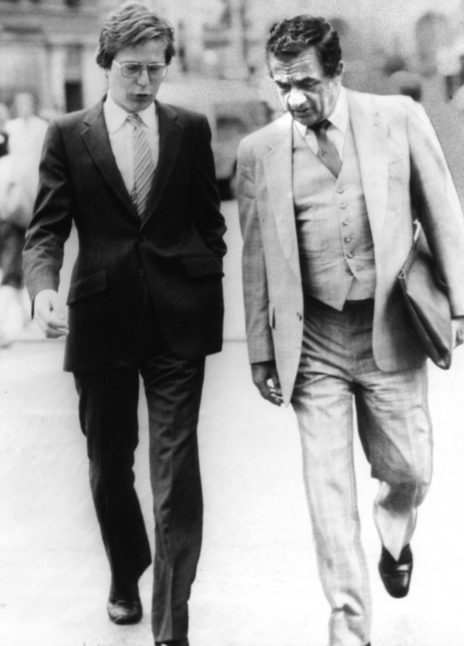 School Board President and Treasurer Cited for Contempt Between 1977 and 1981, contentious court challenges regarding the organization, planning, and implementation of desegregation orders were commonplace in Cleveland's Federal District Court. Here, Board President John Gallagher and Tresurer Paul Yacobian leave court after having been arrested for contempt of court. Source: The Cleveland Press Collection, Michael Schwartz Library, Cleveland State University. Date: September 2, 1981