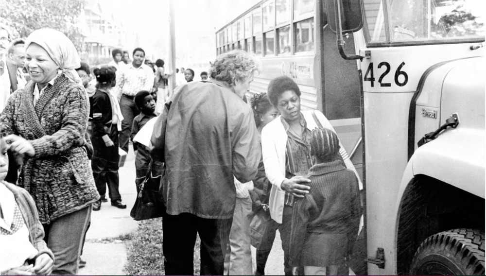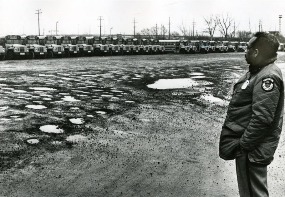 First Day of Busing September 10, 1979 is acknowledged as the "first day" of busing to attain a desegregated school system in Cleveland. A three-phase implementation plan was enacted to balance the schools racially. Source: The Cleveland Press Collection, Michael Schwartz Library, Cleveland State University. Date: September 10, 1979