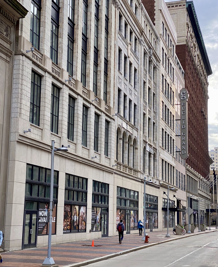 The Euclid Grand In 2021, the historic John Hartness Brown Building re-opened as the Euclid Grand, with 240 residential apartment units, 20,000 square feet of retail space, and an underground parking garage. This photo was taken in April, 2022. Source: Jim Dubelko