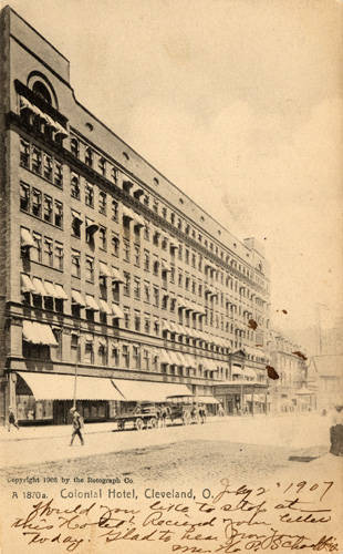 Within a year after opening, the hotel was already being improved with the addition of a 100-room wing on the Prospect Avenue side and parallel to the Colonial Arcade. Another expansion occurred in 1901, adding nearly one hundred rooms and expanding the hotel’s restaurant. The hotel during this period occupied a considerable amount of property on the Euclid side of the street, but the side facing Prospect Avenue was shallow in comparison. With this enlargement, the Colonial Hotel would be one of the largest hotels in the city. This renovation was started so the Colonial could keep up with the accommodations and luxuries that other hotels in the city were offering. In fact, it was speculated that the Colonial only decided to attempt this expansion to keep pace with the Hollenden Hotel, which, at this period, was one of the most luxurious hotels in the city.