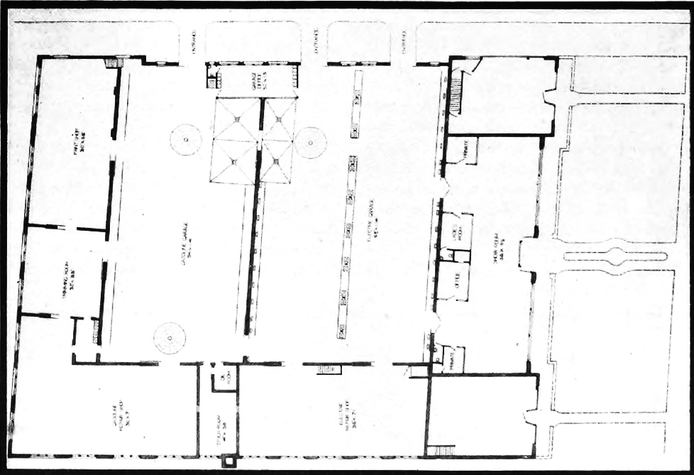 The floor plan for the first floor of the Baker Electric Motor Vehicle Company showroom