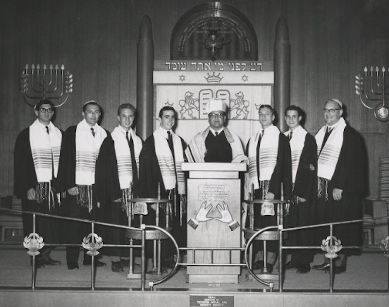 Even though the Jewish Community Center continued to work and hold functions out of the Kinsman-Lee Drama Center until late 1960, ownership of the property at 3688 Lee Road was transferred to the Ohel Jacob Anshe Sfard Congregation in November, 1957.  At the time of the sale, the formation of Ohel Jacob Yavneh Congregation was announced. The merger consolidated members of two Mount Pleasant Orthodox synagogues, Ohel Jacob and Ohel Yavneh.  As with many Jewish religious institutions that had grown along Kinsman Road, the two congregations were faced with dwindling membership. Re-centering their new synagogue within Kinsman-Lee’s Jewish community presented an opportunity to remain relevant in the religious lives of its members, and to grow. Following its purchase in 1957, the Drama Center auditorium housed the new congregation’s religious services. For over two years, both the Theater Department and Ohel Jacob Yavneh shared use of the building. The Ohel Jacob Yavneh Congregation also merged with members of Mount Pleasant’s Tifereth Israel Anshe Shard Congregation, and became known as Shaker-Lee Synagogue in 1959.