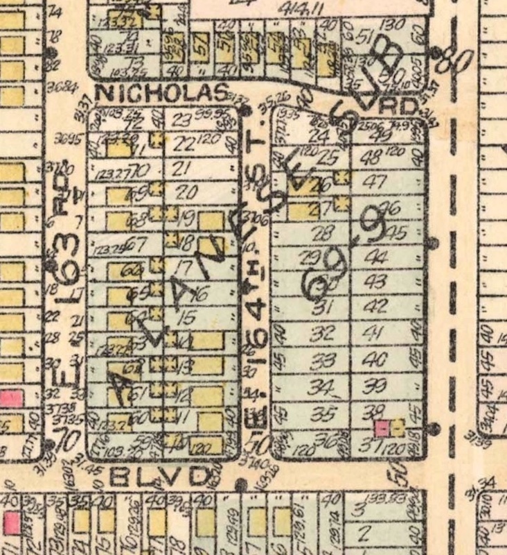 The Properties of Antonio Lanese Antonio Lanese acquired lands at the southwest corner of the Kinsman-Lee intersection following the area's development by the Shaker Overlook Company. Newspapers reported the cost of this transaction as $16,500. The synagogue at 3688 Lee Road would be located in allotment 50 (top right). A 1927 plat map, updated with structure through 1937, does not yet reflect a structure on the grounds. Source: Cleveland Public Library, Digital Map Collection