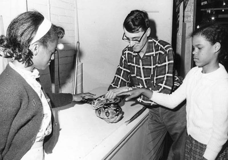 The Cleveland Plain Dealer announced the grand re-opening of the Cleveland Aquarium in its September 5, 1954 edition, citing it as the “most public institution of its kind.” The unique aspect of the Aquarium’s development in Gordon Park was the “brick by brick... fish by fish... drop by drop” building of the facility by the Cleveland Aquarium Society, Cleveland Museum of Natural History (CMNH), as well as volunteer "sportsmen, amateur marine biologists, teachers, housewives, and youngsters." The effort began in 1954 when the building, utilized as a Trailside Museum, was threatened with closure. Aquarium Society members contributed material, labor, and fundraising efforts to retrofit the trailside facility to house a public aquarium.