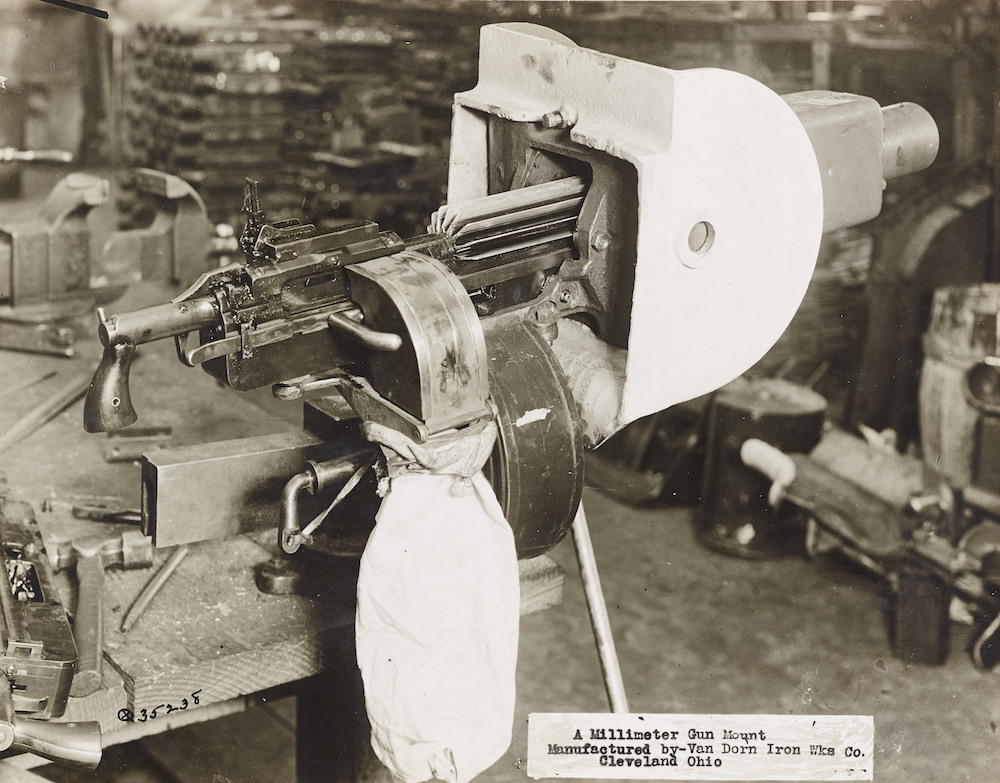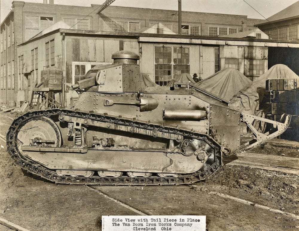 Van Dorn became an important wartime production company to supply the United States military. During World War I, the Van Dorn Iron Works Company produced Renault six-ton tanks and was only one of three companies in Ohio to produce tanks. Van Dorn also produced a variety of marine furniture for the navy including cots, desks, lockers, and mess tables all of which had to be specially enameled and lacquered. Van Dorn also produced armor plating for military vehicles and aircraft during both World Wars. The Van Dorn Iron Works Company was rated one hundred percent for their wartime production during the First World War, while they received a pennant for outstanding performance in wartime production during World War II.