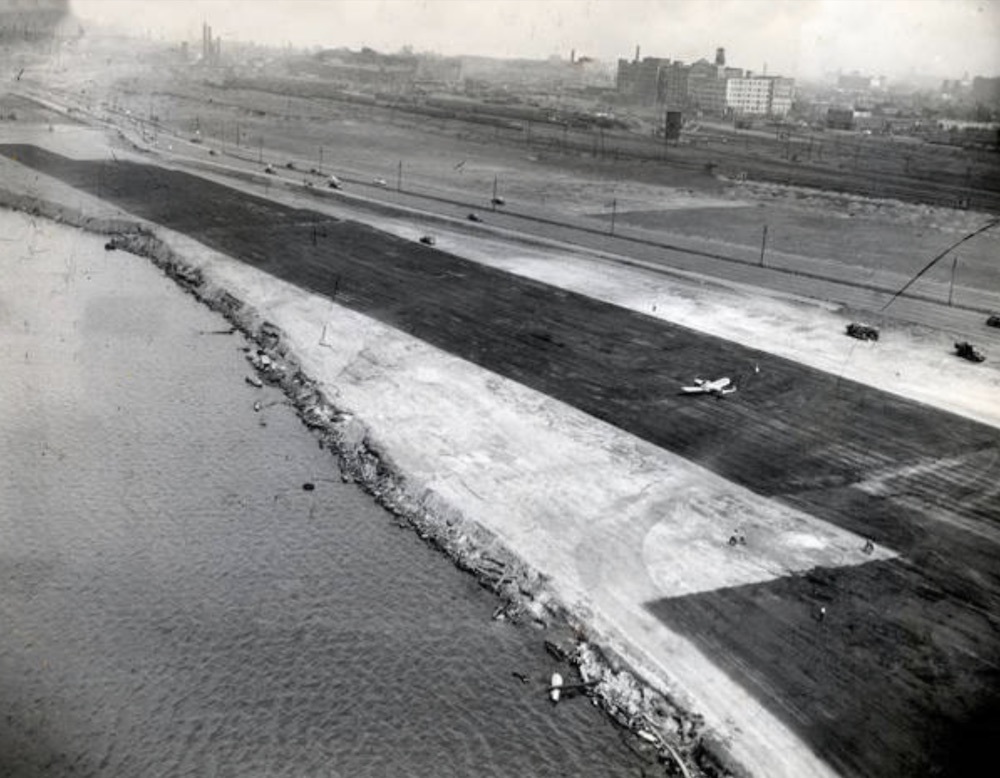In 1923, the Air Service, a part of the U.S. Army, published and distributed a basic how-to manual on airport construction for America’s cities. This publication, titled “Airways and Landing Fields,” contained information on the Model Airway program as well as a list of suggestions to be followed by a city on “How An Airport Should Be Built.” These suggestions listed in the Air Services bulletin regarded the location suitable for building, related to the size and shape, ground material, markings and accommodations. These attributes that the Air Service bulletin prescribed included being within proximity to ground transportation, merchandise and business districts of a city, which the City of Cleveland took to a different level for building its second an airport. The lakefront and its subsequent use or misuse, as the case may be, has been a point of contention among Clevelanders for decades. Before the turn of the twentieth century there had been a park on top of the bluff overlooking the lake, appropriately if unimaginatively named Lake View Park. Then during the Great Depression the shoreline between what is now called East 9th Street and East 12th Street was a dumping ground for the city’s refuse both material and human. In this area a makeshift “Hooverville” as shantytowns were christened after President Hoover, was constructed by the hundreds of jobless and homeless Clevelanders as a result of the Depression. To combat this refuse and homeless problem several influential and wealthy Clevelanders put forth an idea to clear the area and build a World’s Fair type event in the location. This event would be known as the Great Lakes Exposition of 1936. During the exposition, future ideas and plans were proposed, displayed and developed about what use the lakefront could be to the city. Eventually the most practical solution was proposed of transportation facilities either marine or aerial in nature. The proposal contained the early building blocks for a lakefront plan that included the entire shoreline of the city of Cleveland and would contain an aviation point which would become Burke Lakefront Airport. The Lakefront area where the refuse and Great Lakes expositions were once located was not suitable enough for a full-fledged airport according to the Air Services suggestions made in 1923. Nevertheless, a Lakefront location for an airport was seen locally as a huge draw for tourists, businessmen and Clevelanders alike. Proposed as only a short ten-minute drive from Public Square in the center of the city, it was viewed by many as what could be a great alternative to the more distant Cleveland-Hopkins Airport. In the early 1940s construction on a dike retaining wall in Lake Erie by the U.S. Army Corps of Engineers began, which was the outer support area, where within the interior was to be completely filled with hundreds of tons of dirt dredgings from the Cuyahoga River. The interior area was partially completed and secure enough in August 1947 for a temporary runway to be built and the first airplane to land at the site. On the shoreline, off Memorial Shoreway and in between East 9th and East 12th Streets Mayor Thomas Burke and Major John Berry, City Commissioner of Airports, were on hand to perform an opening ceremony with the first plane to land at the site. Over the next year the Army Corps of Engineers continued to develop what would become the permanent airport by depositing over 700,000 cubic yards of dredging on both the east and west ends of the temporary runway. Even though the completed airport was far from completion, within about five years, it still managed to set records for the numbers of flights and passengers traveling through the area in 1949. There was a total increase of about 200 aircraft and over 400 more passengers than in the previous year. The 1950s saw a need for the attribution of more money through bonds to make improvements and completions to the Lakefront Airport. The 1960s were a decade of change and celebration surrounding the nearly completed Lakefront Airport. Continuous flights were flying in and out of the Lakefront Airport, and the first commercial business, Lake Central Airlines, planned to move some operations to the Lakefront Airport. A Nike missile facility that was built near the Lakefront Airport in the late fifties was shut down with updates to technologies which rendered the site obsolete. Controversy and near closure followed the airport surrounding the proposed installation of a new heavy-lift crane at the West 3rd Street docks. The proposed site would have caused disruptions to the flight paths of planes into and departing the Lakefront Airport. This was such a controversy that even Port Director William Rogers proclaimed that he would quit if the city approved the proposed crane installation on the piers north face. Throughout all this, entertainment was still to be had in the form of high-flying action during the annual Memorial Day air shows held at Burke Lakefront Airport especially in the form of the "Girl on the Wing" (aircraft wing walks by stuntwomen). The 1970s saw expansion at Burke Lakefront Airport with a focus on attracting more small airlines providing destinations such as roundtrip flights to Detroit, Michigan. An increase in numbers of flights and passengers from the sixties into the seventies produced a need for construction of new West and East Concourses. The 1980s, on the other hand, saw no further expansion of buildings or rise in numbers of passengers or flights but instead the inclusion of a new opportunity for an entertainment location for the city. The first Cleveland Grand Prix (similar to the Indianapolis 500) was held on the airport's runways and approach aprons on July 4, 1981.