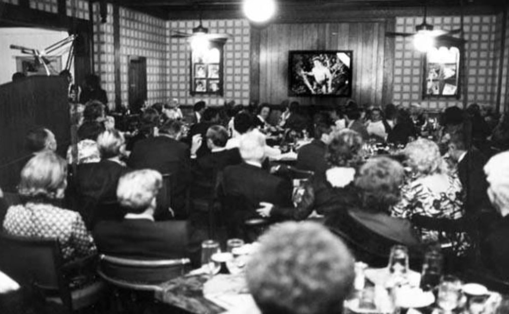 Dinner with the Stars Each of the restaurant's dining rooms had at least one movie screen cut into a wall, behind which was an 8mm projector showing old films.