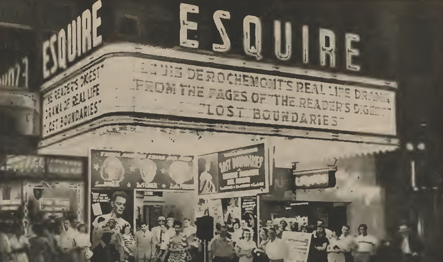 The building changed hands again in 1948, reopening as the 701-seat Esquire Theater under the local ownership of Community Circuit Theaters. The premiere featured Frank Borzage’s “Moonrise.” The 1948 renovation added a neon-lighted marquee, upholstered seats, updated sound and video equipment, and a beige, turquoise, and rose color scheme. Operating for only three years, the cash-strapped Esquire closed without ceremony on May 28, 1951, after showing “I Can Get It For You Wholesale.”
