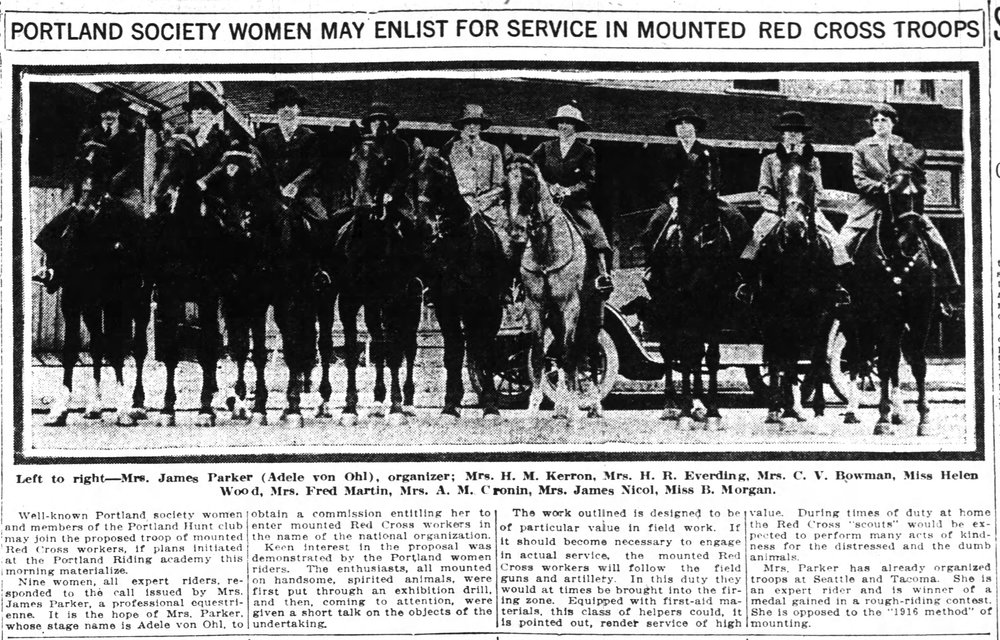 As World War I raged across battlefields in Europe, Adele von Ohl Parker, nationally known daredevil rider, waged a campaign in the United States for the creation of a mounted Red Cross to be composed entirely of upper-class horsewomen. Conscious of the limitations that society placed upon women like herself in the early twentieth century, she believed that women would rally around her campaign. She wasn't wrong, but before such a mounted Red Cross could be successfully organized here, World War I came to an end.