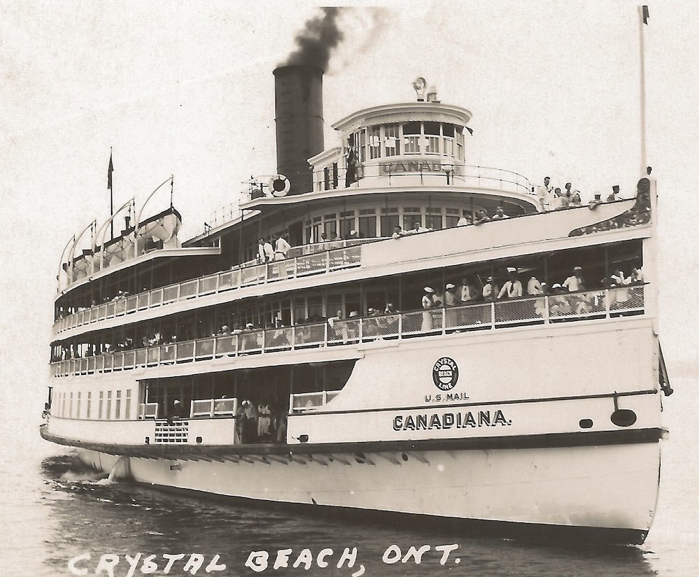 The S. S. Canadiana was originally built in 1910 to ferry passengers from Buffalo, New York to the Crystal Beach Amusement Park in Crystal Beach, Ontario. It made the circuit up to six times a day for over 40 years. However, by the 1950s revenue declined. Hastening its retirement, a fight broke out onboard the Canadiana on May 30, 1956. Dubbed “The Crystal Beach Boat Race Riot”, the initial fight between teenagers started two days earlier at Crystal Beach Amusement Park before eventually continuing onto the Canadiana’s voyage back to Buffalo. The Canadiana retired from the Crystal Beach circuit later that year.