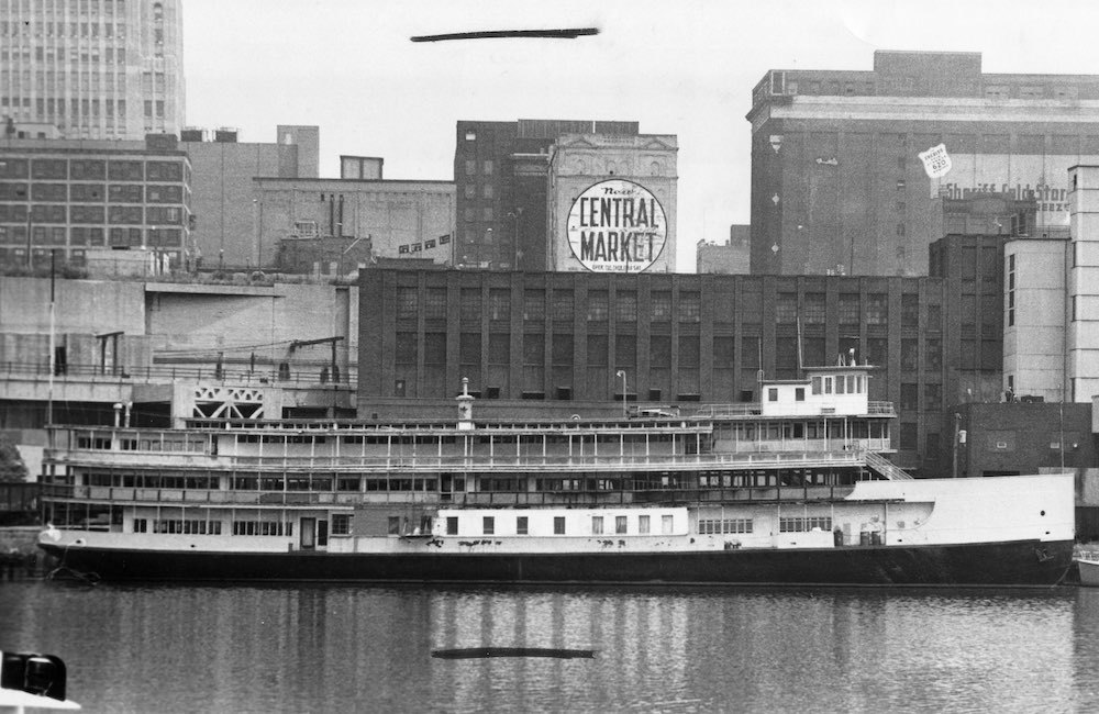 After a long and fruitless battle to turn a 70-year-old steamship into a floating restaurant in the Flats, Jim Vinci’s project came to a quick and dramatic end. Within 20 minutes the S. S. Canadiana sank to the bottom of Cuyahoga River on February 17, 1982.