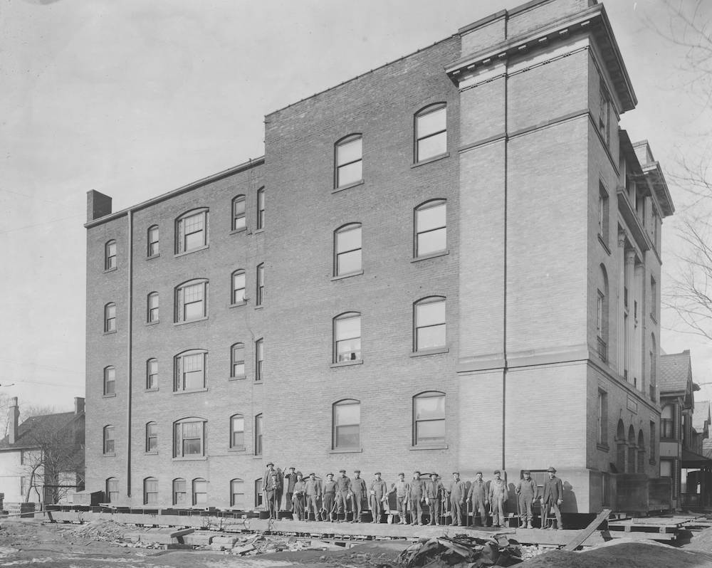 Before the two streets were reimagined by early planners as a thoroughfare, however, each was the center of a vibrant east side residential neighborhood. More than 300 single-family houses, many of Queen Anne architectural design, were located on the two streets. East Prospect Street, which was located just one block south of Euclid Avenue’s millionaire estates, was home to many prominent Clevelanders, including Lillian Towslee, one of Cleveland’s first woman physicians, who served as the second president of Women’s Hospital. From 1895 until her death in 1918, she lived in a large house at 8118 Carnegie Avenue designed by Cleveland architect Riley Austin Bissell. Three public elementary schools—Sterling, Sibley, and Bolton—were located on the streets, as were a number of other notable institutions. The Convent of the Sisters of the Good Shepherd, which ministered and provided shelter to women and girls in need, was located on the southeast corner of Sibley and Sterling (East 30th) Streets. The Gatling Gun Armory was on the north side of Sibley near Kennard (East 46th) Street. Next door to it was the Young Hebrew Men’s Association, operating in the former home of Brooks Military Academy. Maternity Hospital was located up the street in a single- family house at 134 East Prospect (6216 Carnegie). The First United Presbyterian Church (today, St. Timothy Missionary Baptist Church) sat on the northeast corner of East Prospect and Giddings Road (East 71st Street). Sibley even sported a baseball field near Kennard (East 46th) Street, called the Kennard Street Ball Park, where the Cleveland Blues of the National League played baseball from 1879 to 1884. From a late nineteenth century city planning perspective, however, what was most important about these two streets was that together they constituted almost two-thirds of the roadway needed for the proposed southern thoroughfare to the city’s east end. Newspaper accounts from that era suggest that residents of the two streets were also enthusiastic about the proposed thoroughfare, thinking that it would lead to the transformation of their streets into a leafy park boulevard with direct access to Cleveland’s new east side park system. On that score, they would soon learn that they were sadly mistaken.