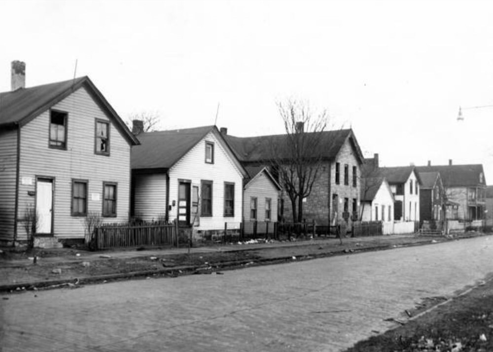 Houses Marked for Demolition Public housing was not built on empty fields and vacant lots but rather on top of houses that were bought by eminent domain to create the project. Here, houses marked for demolition to make way for the Cedar Extension (located south of Central Avenue across that street from the original Cedar-Central Apartments), in a time when demand for public housing was soaring. While the original housing and neighborhoods were imperfect, the new housing projects of the early decades were large, used brutal architecture, and were difficult to keep up when funding waned- which often lead to fractured communities. Source: Cleveland Memory Project, Cleveland State University Library Special Collections Date: March 20, 1953