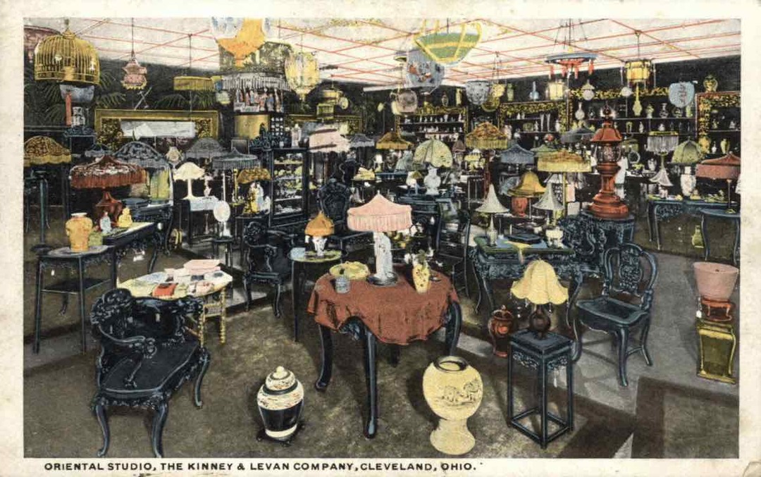Following A. B. Levan's death soon after the move to Euclid Avenue, Kinney continued to update his store. He opened a portion of the space to the Likly & Rockett Trunk Co. in 1916, and two years after that he added the Oriental Studio, where costumed Chinese women served tea to customers. In 1928, Kinney bought the property he had originally leased. In addition to recasting his store's "interior frontier," which historian Alison Isenberg has identified as an approach to helping "Main Street" survive the Depression, four years later, Kinney took up interior decorator services for other businesses and even decorated the "Home in the Sky" and "House of Tomorrow," two model "houses" in the Builders' Exchange Building, part of the Union Terminal Group.