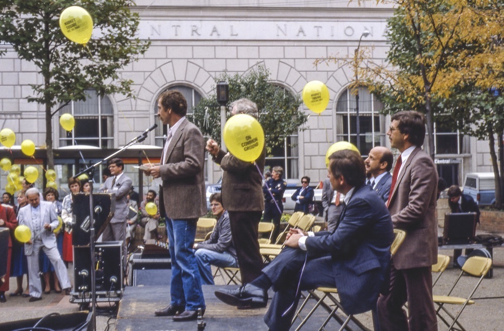 In the 1960s and 1970s, as the renaissance of the Ohio City neighborhood was underway, West Side businessmen urged the City to convert Market Square into a park. Planning and funding for the project were started during the Perk Administration. After initially opposing the park project on the grounds that the park would attract only "winos," the Kucinich Administration reluctantly undertook construction of it in 1978. The former shelter house, which in recent years had become a fast-food restaurant, was torn down. The cement parking lot behind it was removed and replaced with red brick pavers. Brick planters were added; trees planted; and street lighting added. Market Square Park opened to the public in 1979. In 1984, during the Voinovich administration, a large stone, multipart sculpture called "Tempus Pons" (Time to Build a Bridge) was added to the park. The sculpture was a prominent feature of the park until around 2010-2012, when, during a park redesign, it was dismantled and somewhat unceremoniously carted away. Market Square Park remains today (2022) a pleasant and open public space across the street from the West Side Market. It has now occupied Market Square for more than forty years. And to date, there have been no complaints about this use of Market Square by the descendants of Josiah Barber.