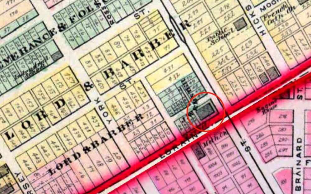 The first of these events occurred in 1855, just a year after Ohio City's annexation, when prominent residents of Franklin Street (today, Boulevard), including future Cleveland Mayor Irvine U. Masters and future Common Pleas Judge James M. Coffinberry, persuaded their new City government to build a public park at Franklin Place. This necessitated finding a new location for the open-air market that had been held there for decades and which, after Ohio City's annexation to Cleveland, had become known as the "West Side Market." Two years later, Cleveland officials were still examining potential sites for that public market's relocation when David Pollock, a West Side businessman, petitioned the City to remove a blacksmith shop that he claimed was unlawfully operating on the old Brooklyn Village square. When Cleveland's City Marshal went out to investigate the matter, he found, and reported to Cleveland City Council, that not only was the blacksmith shop trespassing on the old village square, but so were two commercial buildings owned by Pollock.