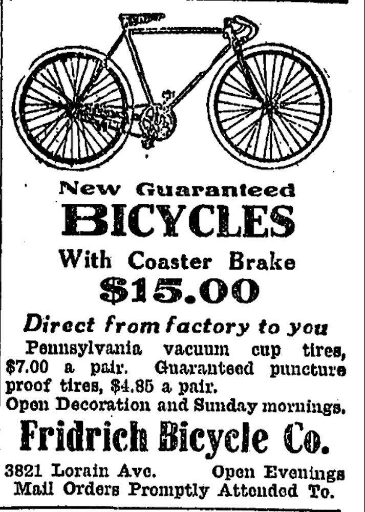 Until it closed in 2024, Fridrich Bicycle was Cleveland's oldest retail bicycle shop and one of the oldest in the United States. The Fridrich family had been selling bicycles in Cleveland for well over 100 years. The family's roots in the Lorain Avenue Commercial Historic District, however, extended even deeper than that.