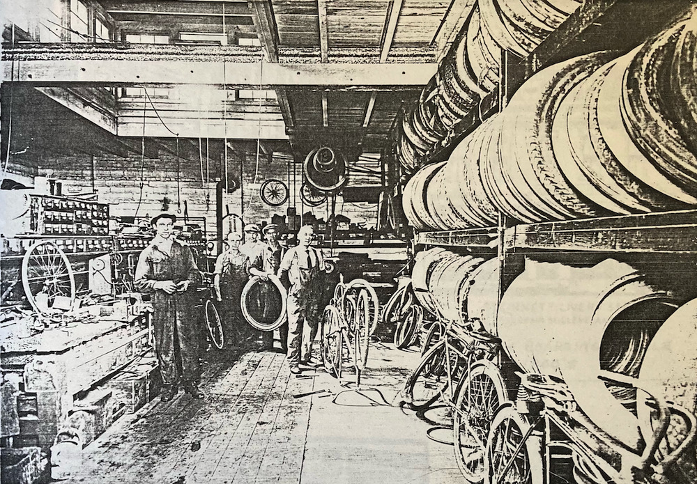 This undated photo of Fridrich Bicycle Store, likely taken after the business moved across the street into the former Steinmetz Livery and Stable Building, shows Fridrich employees repairing bicycles. Source: Nancy Todd Paris, a great-great granddaughter of Joseph and Margarete Schaefer Fridrich.