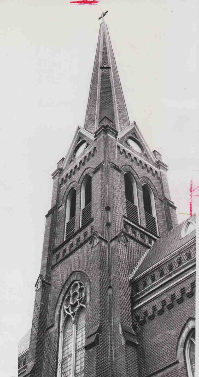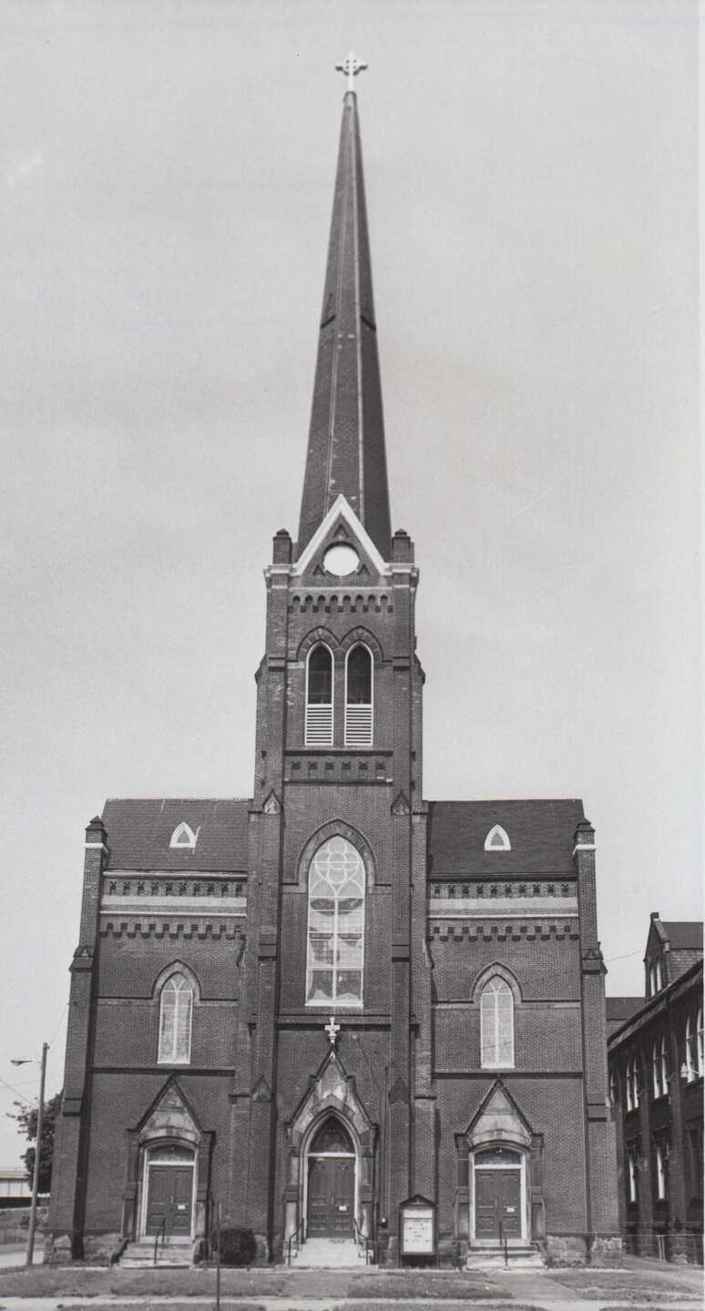 The new church included seating for more than 1,500 worshippers. Pointed arches over window and door openings are Gothic inspired, as are the open belfry and an octagonal spire atop the squared-off bell tower. The church’s 175-foot steeple is visible for miles—a holy beacon for a neighborhood steeped in ethnic and religious history.