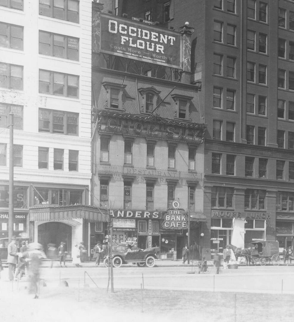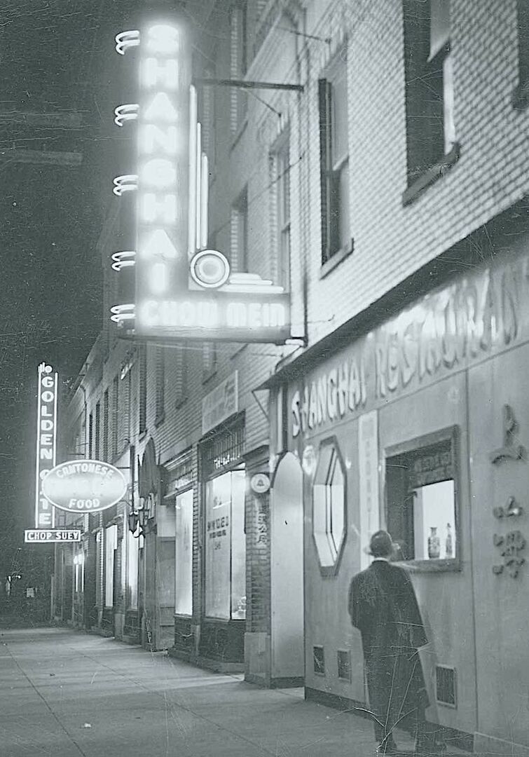 Cleveland’s Chinese community started as a tiny enclave along Seneca Street (later West 3rd) but shifted two blocks east by the early 20th century to the block of Ontario Street immediately north of Public Square. Much like other Chinatowns across the United States, most Chinese businesses in Cleveland were restaurants or laundries. After moving to Cleveland from Chicago, Wong Kee opened the first Chinese restaurant in the city on Ontario Street and then opened a more prominent one called the Golden Dragon on the northwest side of Public Square. Businessmen formed tongs to protect their interests. Over the decades, the two main tongs that emerged were known as the Hip Sing Tong and the On Leong Tong.