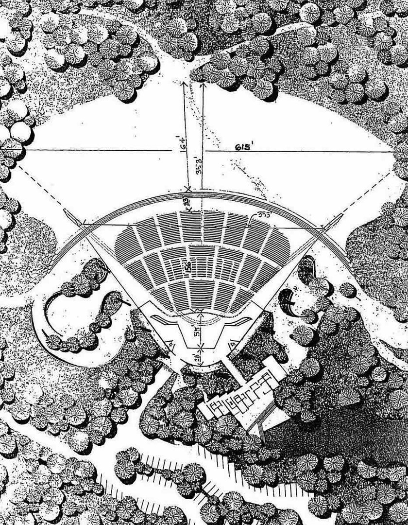 The amphitheater was of modern design by a local architect Peter van Dijk, the son of Dutch immigrants. He worked on many projects throughout the Cleveland-Akron area, such as the restoration of Huntington Bank in downtown Cleveland. Van Dijk left his mark through the 1981 conversion of the old Akron post office into the Akron Art Museum and the construction of E.J. Thomas Hall.